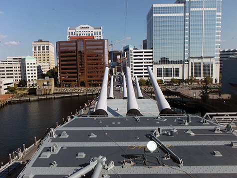 miles away in the Chesapeake, VA area, three 16-inch monster cannon that