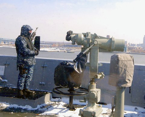 guard on the forecastle while in port, ever vigilant. |