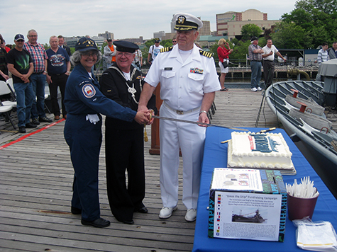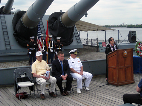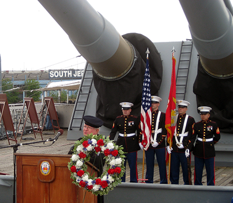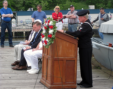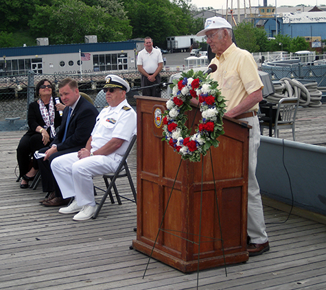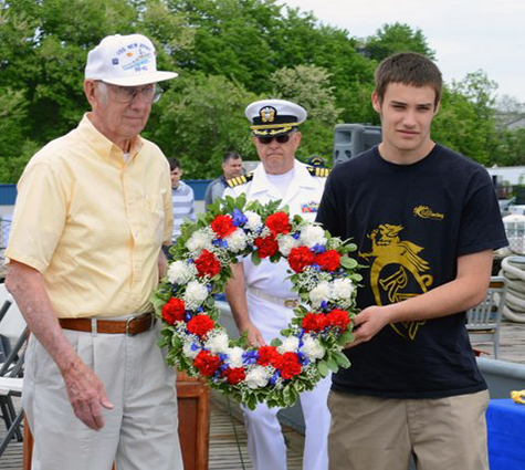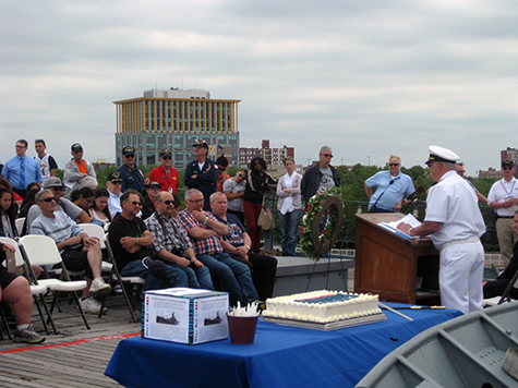 onboard for the celebration. After the remarks there was a wreath tossed