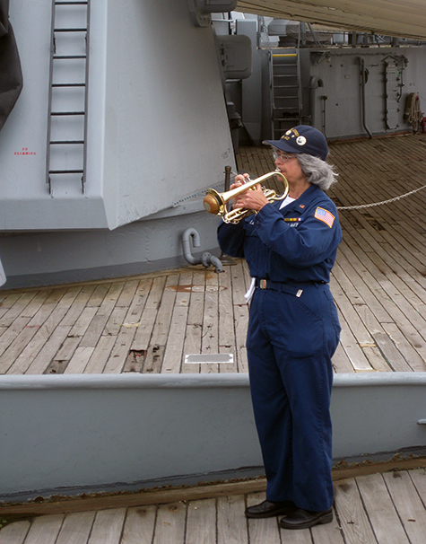 right shoulder. She is the now ships official bugler,