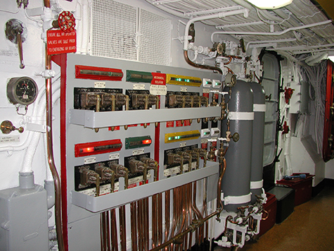 bulkheads are covered with gages, lights, valves and