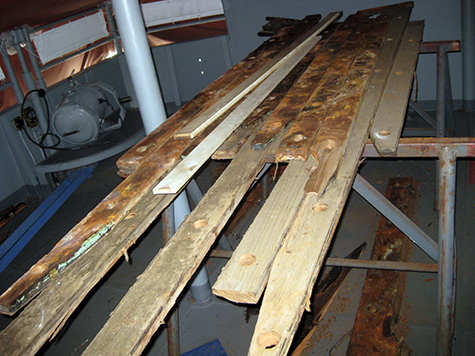 ships construction and launch. Photo taken in Forward Main Battery Plot. |